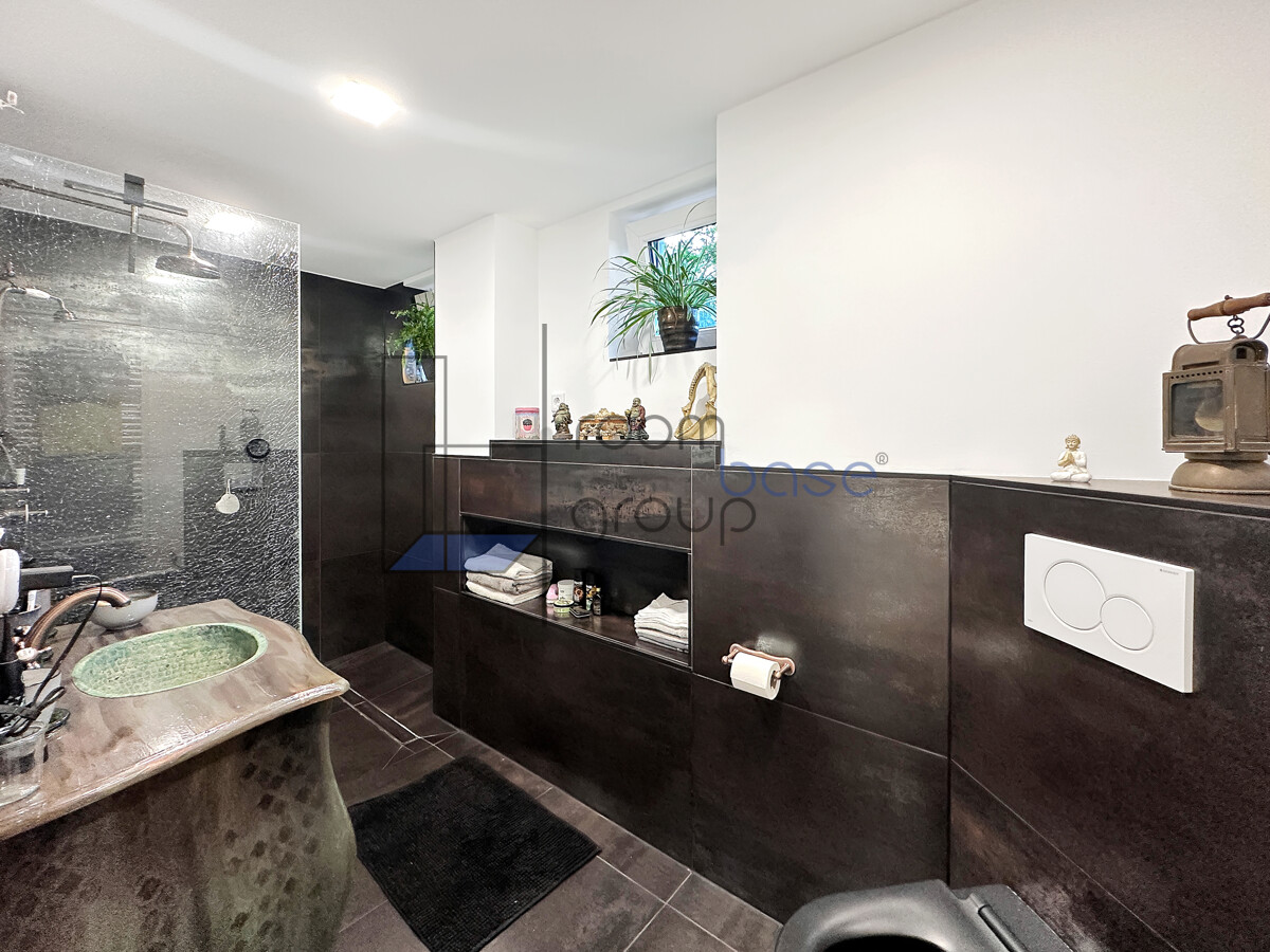 Im Souterrain befindet sich eine vollständig ausgebaute Wohnung mit separatem Eingang, die sich ideal als Einliegerwohnung, Büro oder auch zur Vermietung eignet. Ursprünglich war diese Ebene über eine Innentreppe mit dem Erdgeschoss verbunden. Die Verbindung ist baulich noch vorhanden, wurde lediglich verschlossen und kann bei Bedarf problemlos wieder aktiviert werden. Dadurch lässt sich das Haus flexibel als eine große Wohneinheit oder in zwei getrennte Wohnbereiche nutzen.