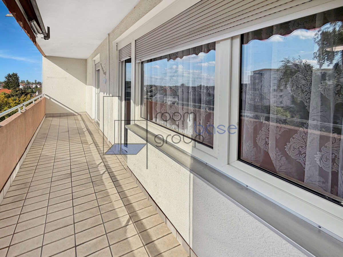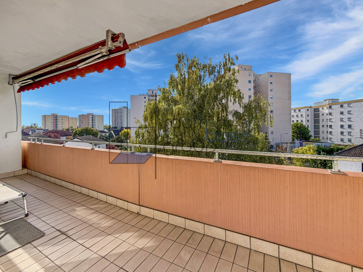 Der überdachte Balkon mit Markise bietet einen schönen Blick über die Umgebung und lädt zum Entspannen ein – ideal für gemütliche Stunden im Freien.