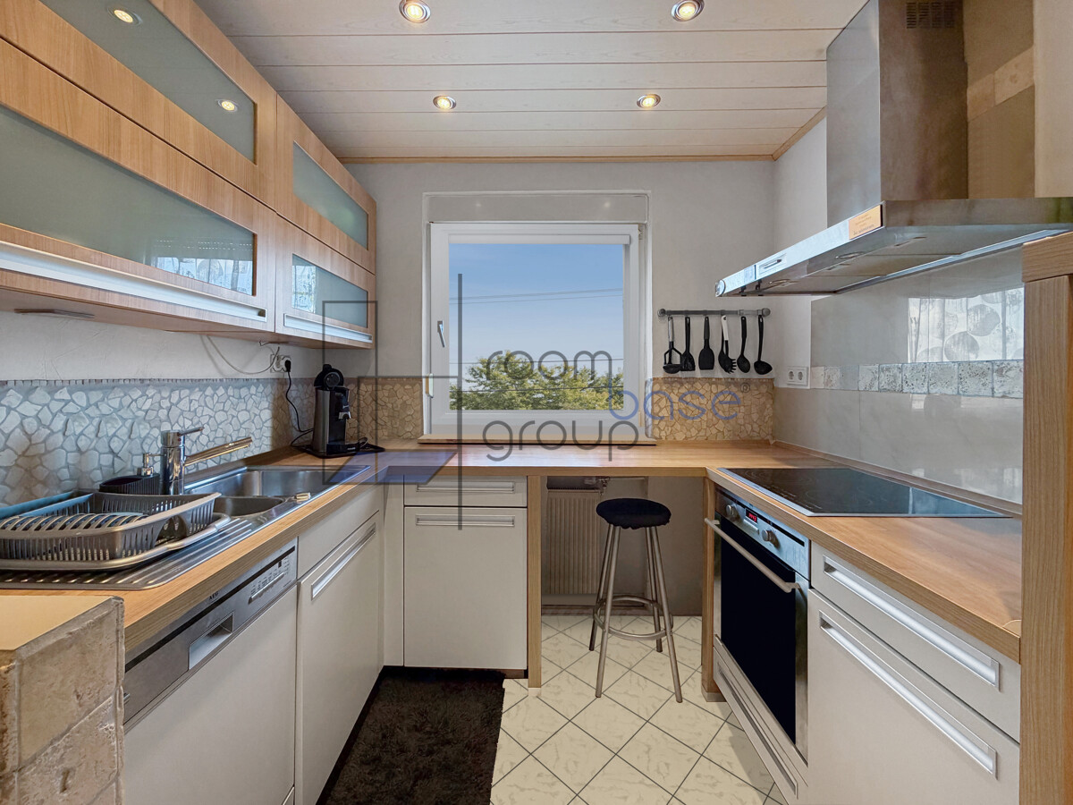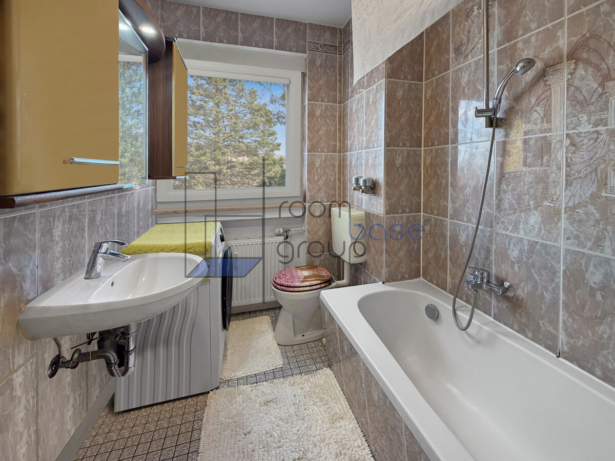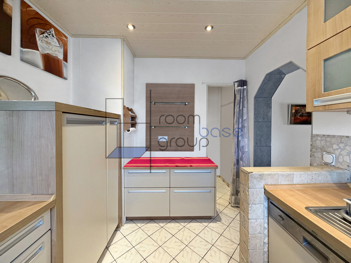Die Küche ist funktional gestaltet und verfügt über eine praktische Abstellkammer. Das Tageslichtbad ist klassisch ausgestattet mit Badewanne, Waschbecken und WC. Große Fenster sorgen in allen Räumen für viel Tageslicht und schaffen eine angenehme Wohnatmosphäre.